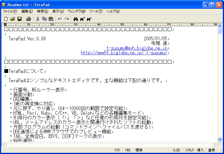 TeraPadは無料で利用できるテキストエディタです。ダウンロードは以下のページから行えます。